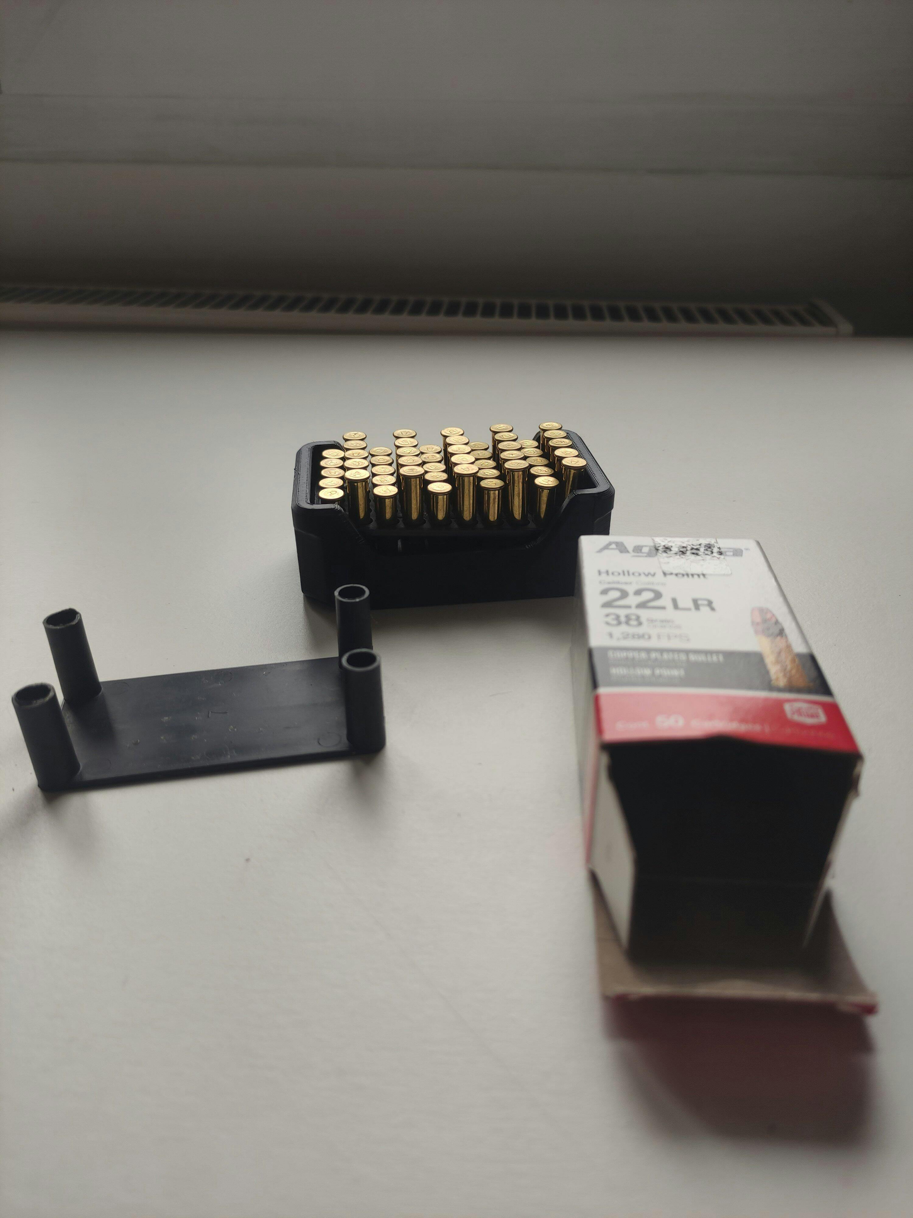 Support bien pratique pour les S&B 22 LR, évite le chipotage & permet un gain de temps.