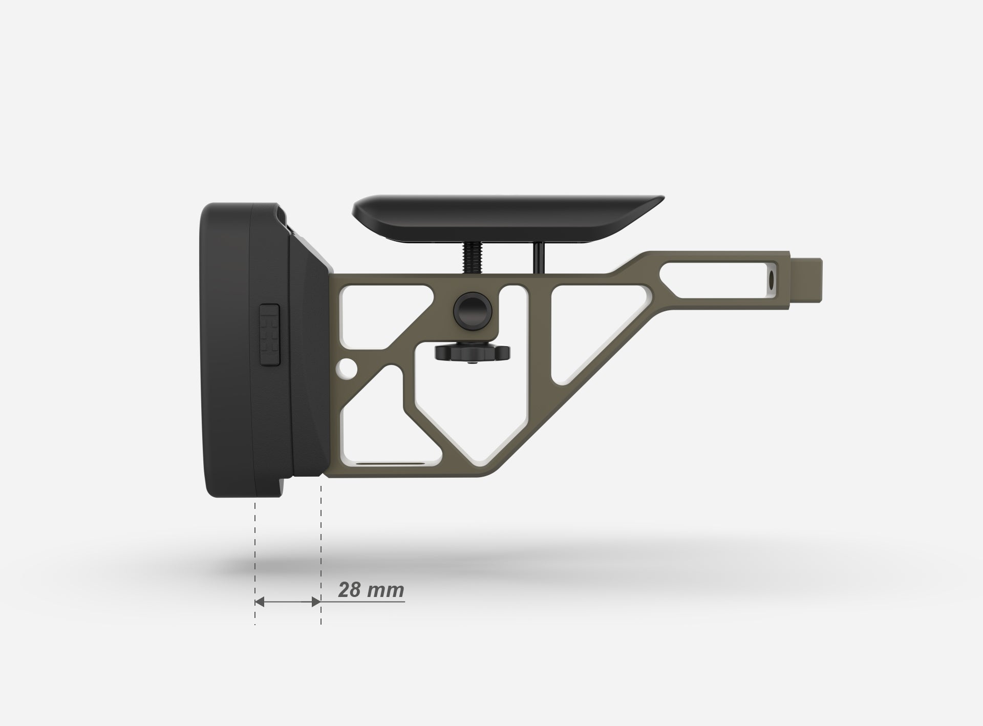 Ergonomie Améliorée : Ce système augmente le Length of Pull (LOP) de 1 cm par rapport au talon nu, équivalent à la configuration d'origine avec toutes les cales.